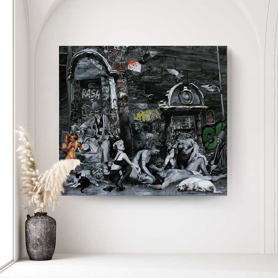 Gazi Sansoy’un sanatı, zamanın katmanlarını birbirine dokuyan bir bellek yolculuğudur. Figürler çoğu kez yüzsüz, kimliksiz ya da dönüştürülmüş olarak karşımıza çıkar... (Devamı sanatçı sayfasında)